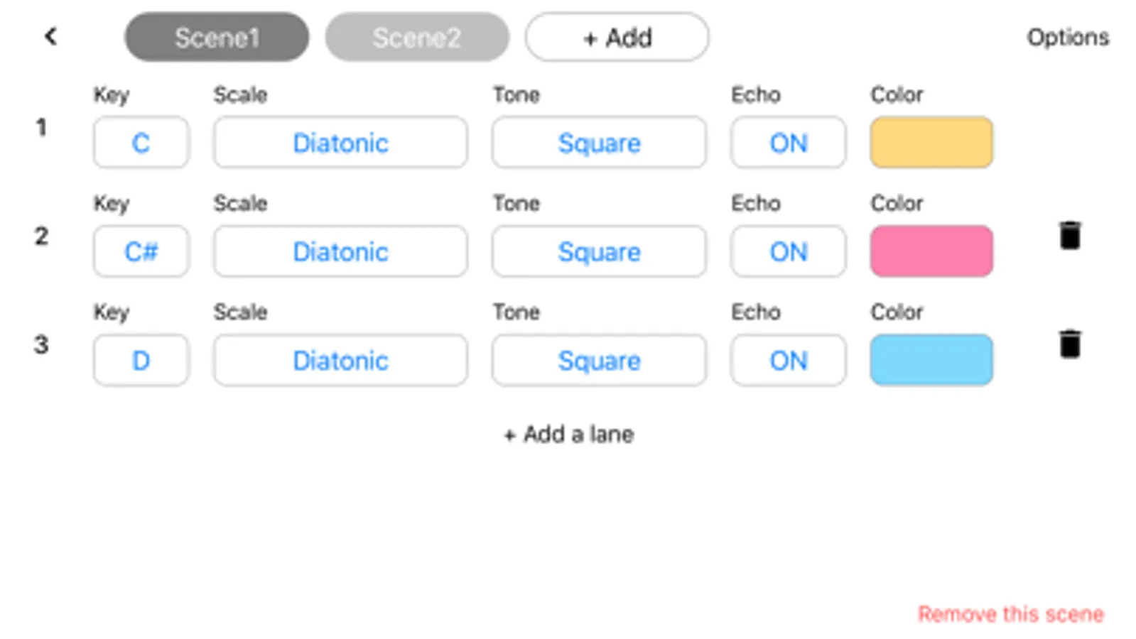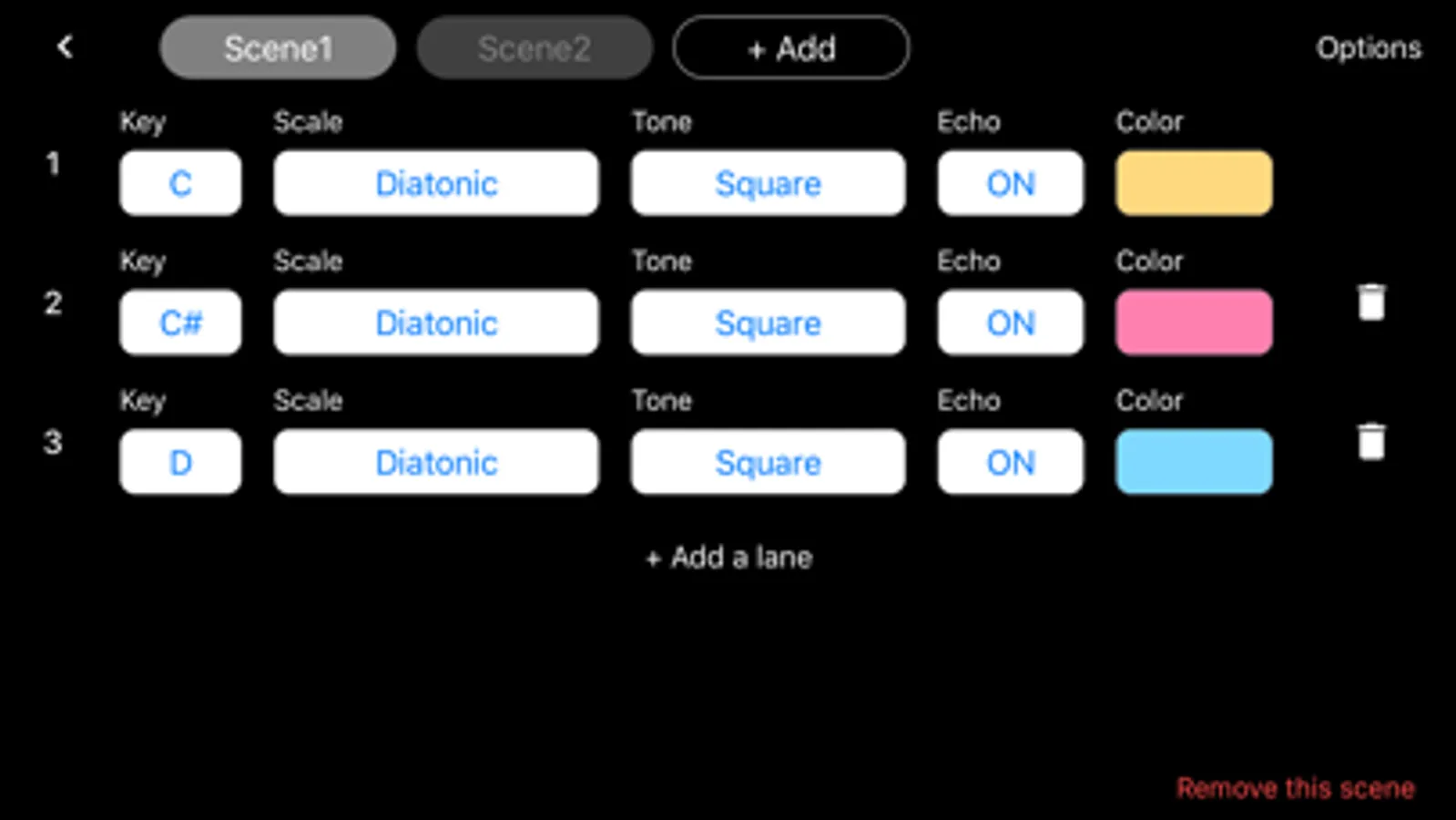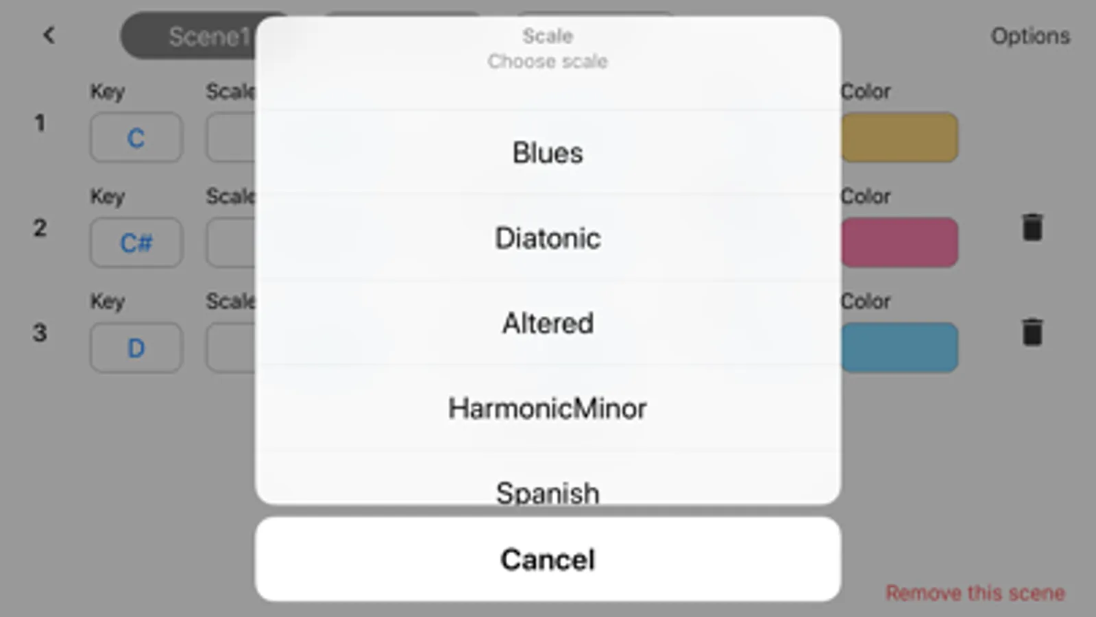 You can assign multiple key/scales in a single screen, which allows you to use it in a song with key changes.