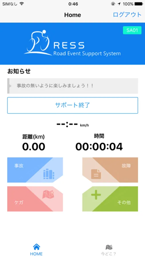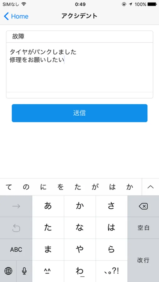事故等発生時、簡単な状況を入力しボタンを押すことにより