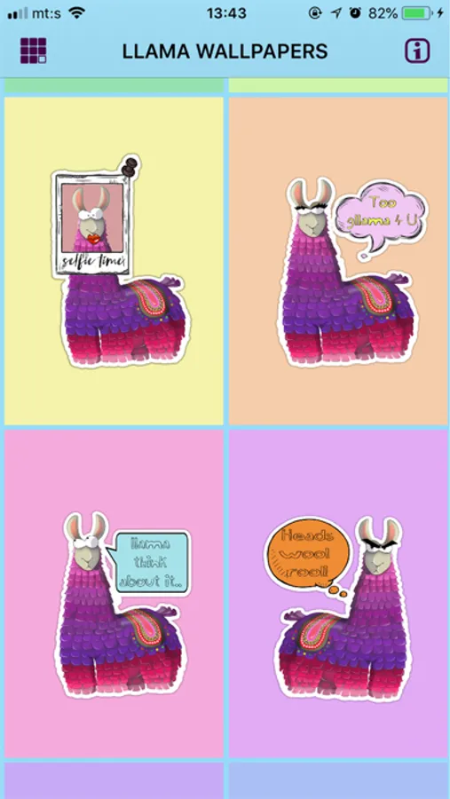 Are you ready for the best stickers in the world? If you like llamas and alpacas and you want to have witty, funny and sassy stickers this is just the perfect app for you! Get llama stickers & wallpapers and personalize your phone with amazing llama backgrounds while you have tons of cool stickers for texting! If you want to add a little sugar, spice and everything nice to your messages send pinata llama stickers to your friends and family to make them laugh! If you love cartoonish stickers with puns that will make you laugh then get these cute llama stickers and llama wallpapers that will make you smile all the time!