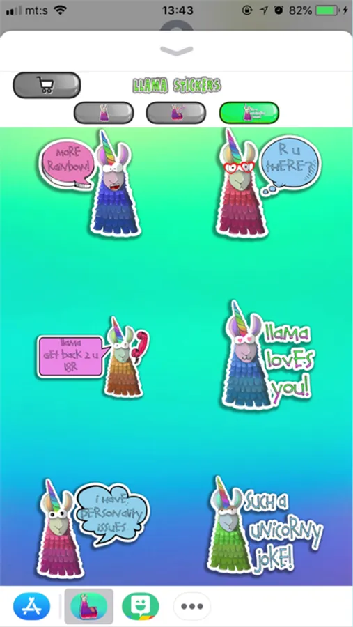 Now you can have chats with your friends in a completely different way with new llama stickers! Try these new stickers and you will love them and use them forever! Check out tons of cool and funny llama sticker with quotes, sayings, exclamations and puns you have never heard before! Make someone laugh and feel amazing and send them these sweet pinata llama stickers that convey your feelings! Our new goofy llama friends has many faces and reactions to every situation! Use this colorful animal to avoid boring conversations and try these funny cartoon stickers while you are texting! Give your texts a little life with new llama stickers and plus you will get tons of cool llama backgrounds and wallpapers you can use to decorate your mobile devices easily and quickly! Enjoy using this funny app!