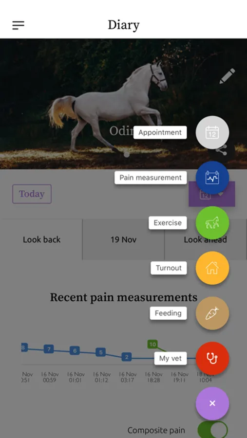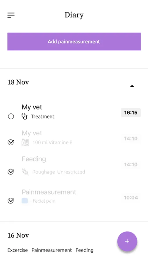 - Diary: Keep track of your horse’s or donkey’s daily feeding regime, excercise, turn-out, medical information and appointments