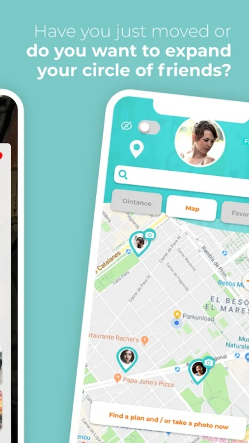 When you enter the application you will find a map that will show you who are the closest people to your location. With them you will have two options to make great plans together: