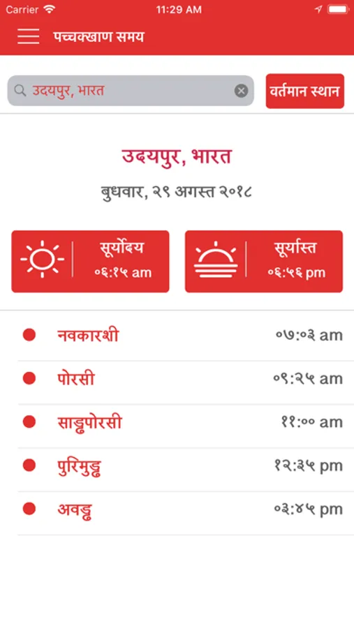 1. पच्चक्खाण समय - दुनिया के कोई क्षेत्र या वर्तमान स्थान के पच्चक्खाण समय