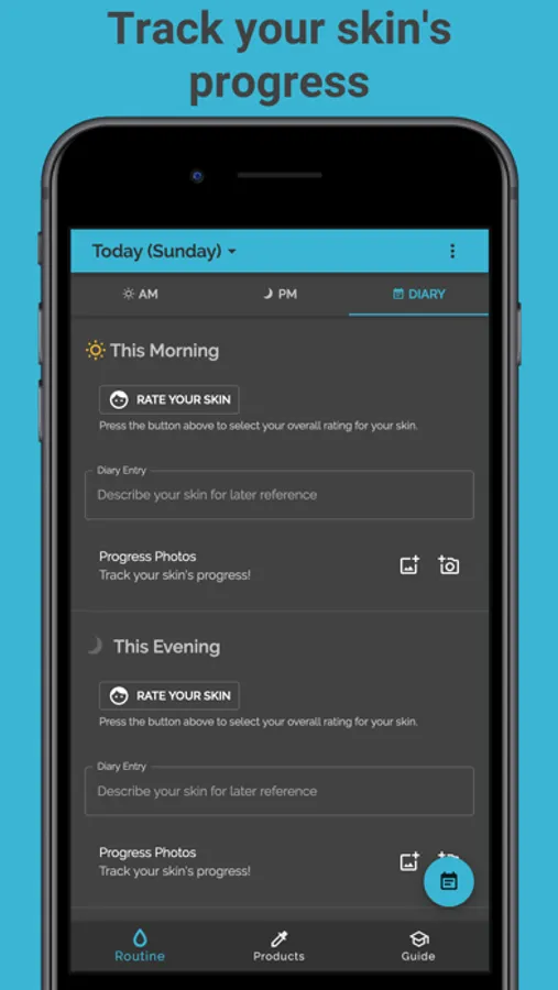 You can add photos of your skin to your diary tracker and also add photos of custom products.