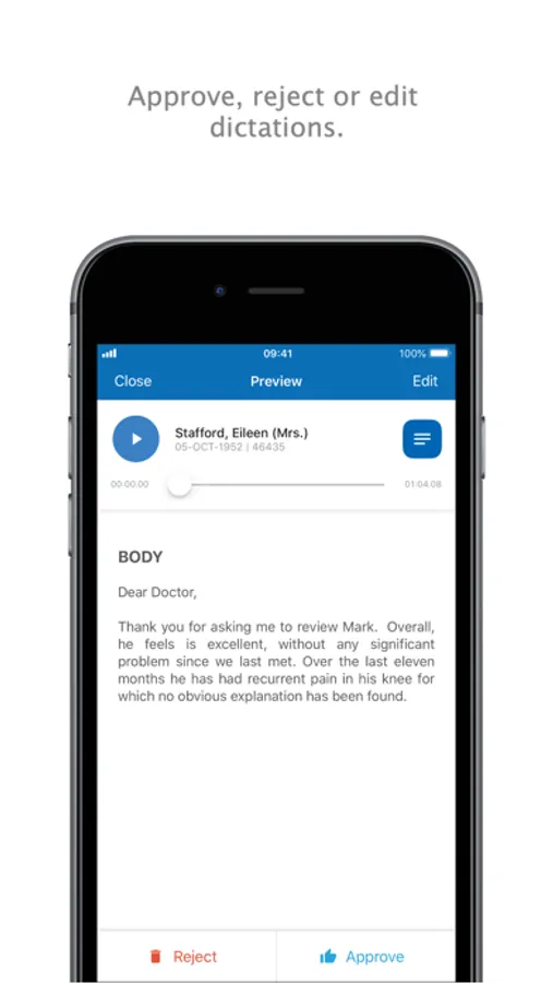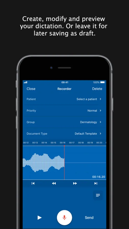 Dictations are securely sent to the servers with no dictation remaining on the device longer than necessary.