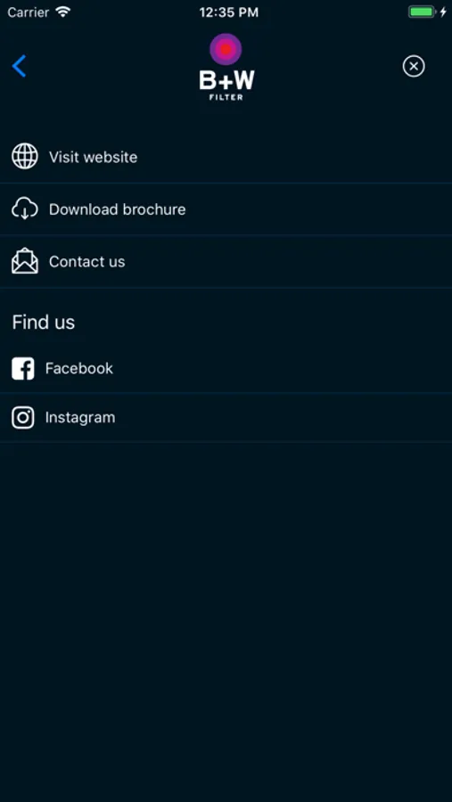 The application enables you to connect with B+W Filters social networks, where you can find an inspiration for your creative work or share your images.