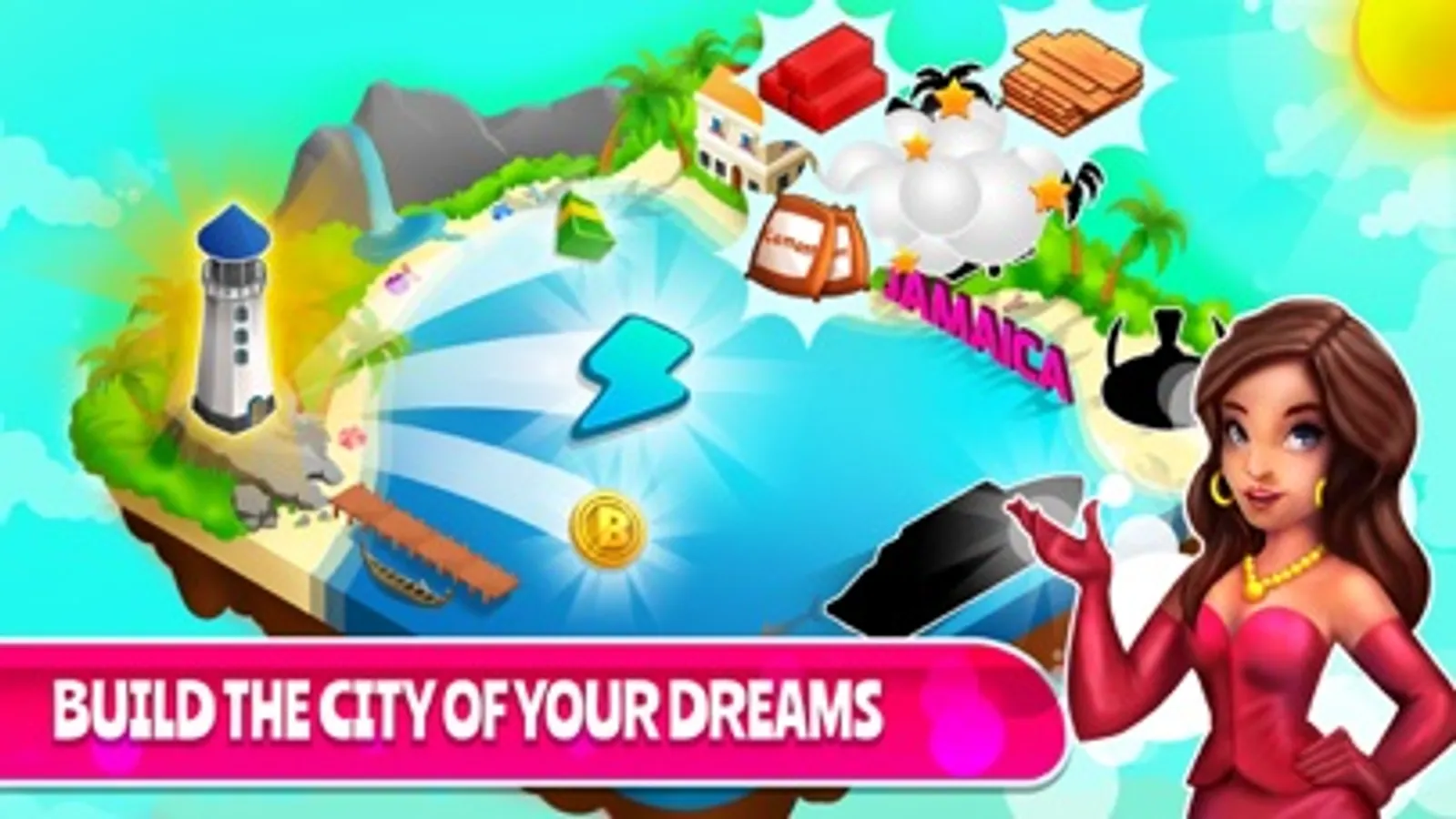 * Build Cities by constructing buildings and earn Treasure Chests