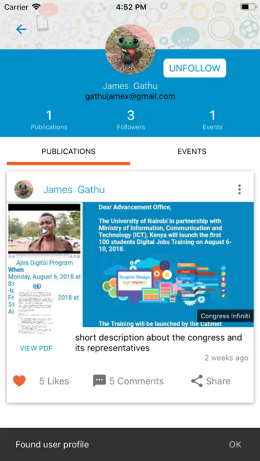 PosterPitch App give researchers ability to share their upcoming event of their congress presentation where their work has been accepted. The app has the ability to share the image of the presenter at poster session and the e-poster in a pdf version.