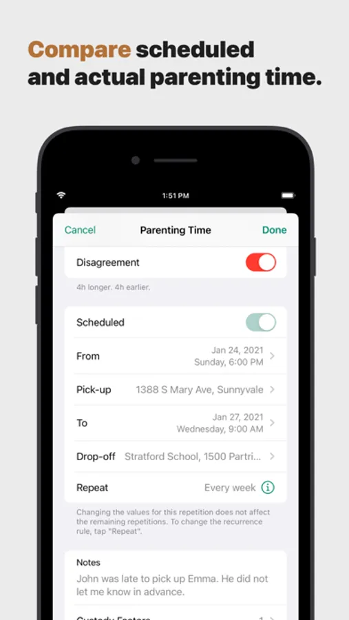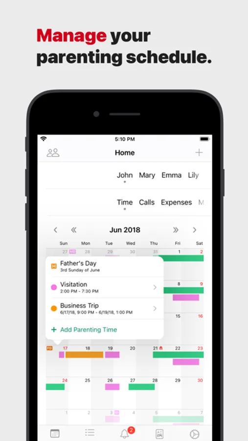 • Log parenting time, call history, expenses, and notes.