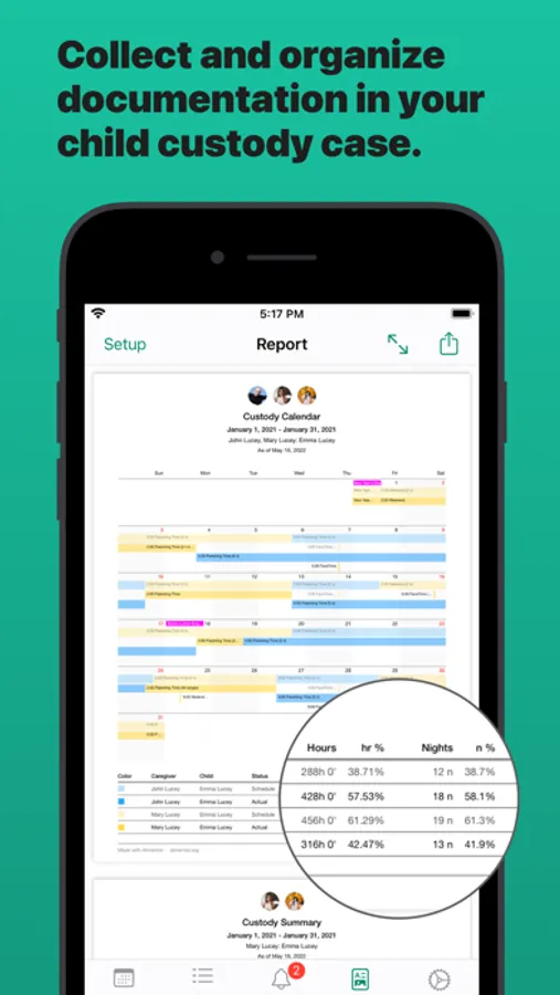 • Send reports to the other parent or lawyer, or submit to the court.