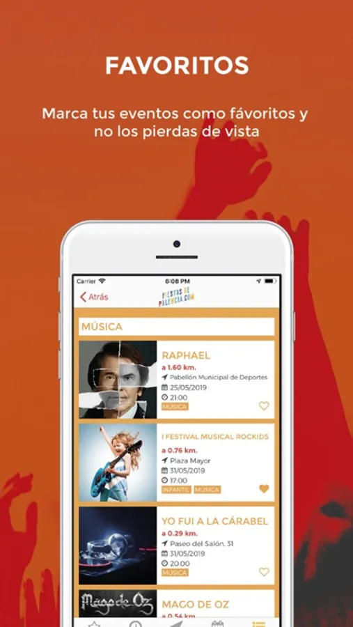 - Destacados: añade a favoritos tus eventos preferidos