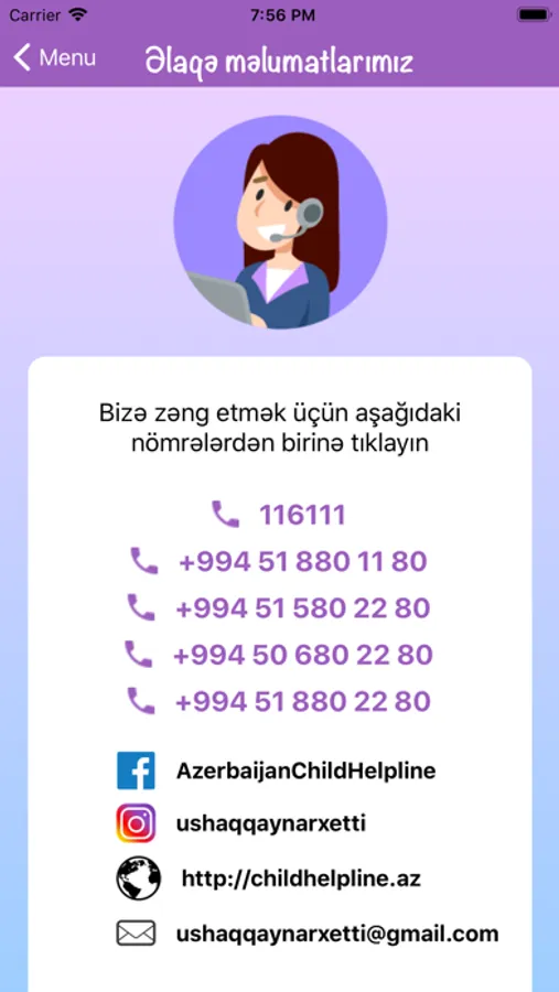 Uşaq qaynar xətt xidməti uşaqlar və onların müdafiəsini özünün başlıca prinsipi kimi götürürərək onlar üçün təcili yardım və uzunmüddətli xidmətlərlə əlaqələndirməni təmin edir. Uşaq Qaynar Xətt xidməti bütün gün ərzində ödənişsiz əsaslarla əsasən uşaqlar və çətin vəziyyətdə olan istənilən şəxslə əlaqələnin qurulmasına və lazımi emosional-psixoloji yardımın göstərilməsinə şərait yaradır. Bu xidmət uşaq və gənclərə onlara birbaşa təsir edən məsələlər barədə öz fikirlərini ifadə etmək və danışmaq imkanı verir. Uşaq Qaynar Xətt xidməti uşaq və gənclərin öz problemlərini aydınlaşdıra bilmək hüquqlarına malik olmasına əsaslanaraq yaradılmışdır.