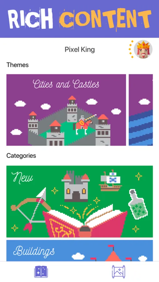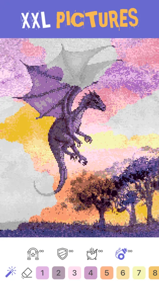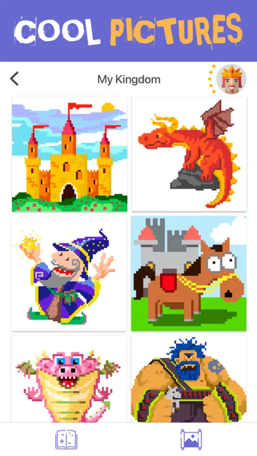 Develop your character and earn new titles as you enjoy this beloved pastime. Reach new levels as you build your kingdom, pixel by pixel. Throughout your kingdom you will access pictures divided into categories and theme collections. Embark on your journey as you paint buildings, residents, monsters, and many more! You can also add your own pictures with Magic Brush!