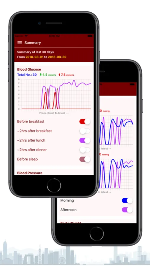 Blood Glucose BG helps keeping track of your blood glucose level. User can record date, time, glucose level, event and notes for each record. The recorded glucose levels of the last 30 days will also be shown using line chart on the summary page. Non-registered user can try this app with a limitation of 7 blood glucose records. To unlock this limitation, user can register with a mobile phone number - Registration is free.