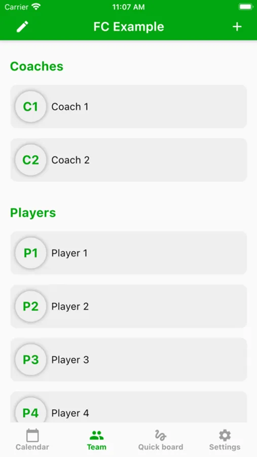 For every training, you can record attendance and for every match, you can give a rating to an individual player, and track the score, goal scorers and assists. Statistics will appear in the Team tab. You can see the player's statistics as all or by month.
