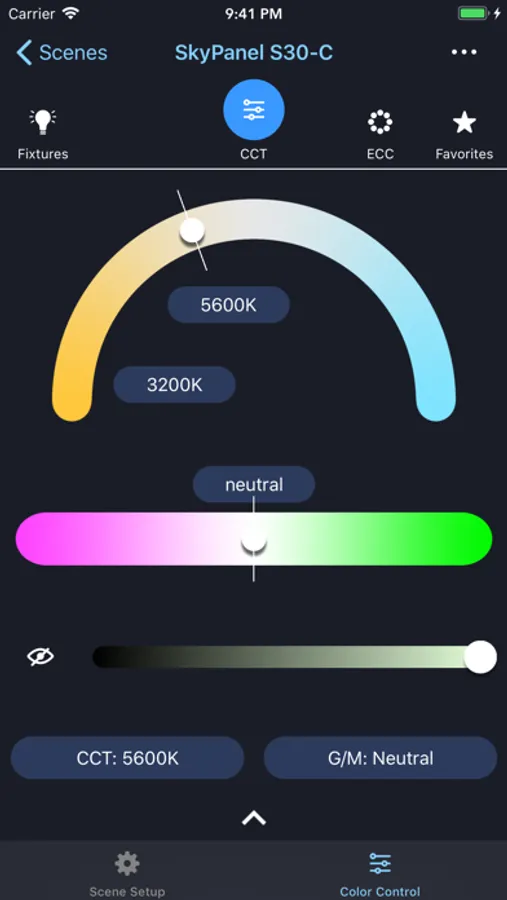 - Control CCT, HSI, RGBW, x,y Coordinates, Gel Selection, Source Matching and Lighting Effects