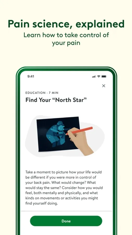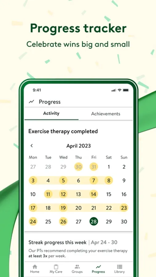 The Hinge Health app has everything you need. Get your exercises, reach out to your care team, and learn about your condition. Set goals, track your progress, and celebrate all your wins big and small.