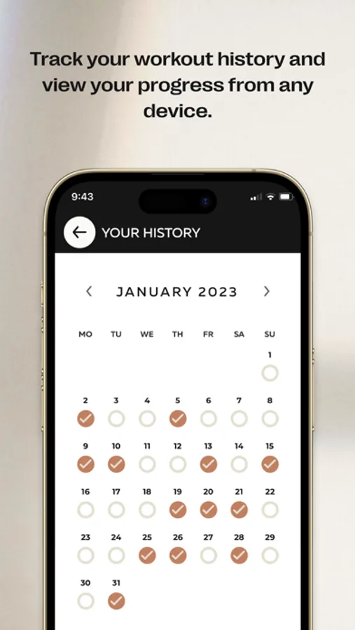 - Accountability included. See your running tally of workouts completed and hours spent working out right in the app.