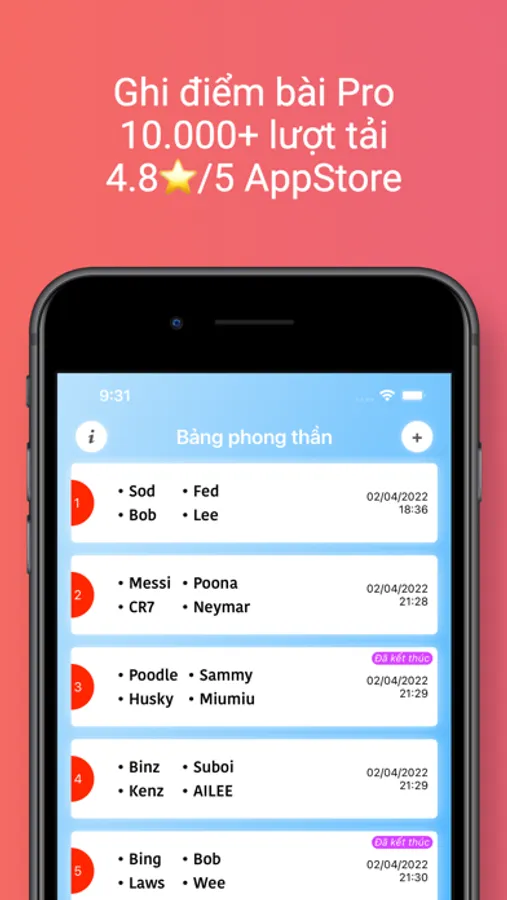 Hãy bỏ ngay việc mang theo giấy và bút khi chơi bài tiến lên các bạn nhé, với ứng dụng ghi điểm bài mới này, việc ghi điểm tiến lên sẽ trở nên nhanh chóng và tiện lợi.