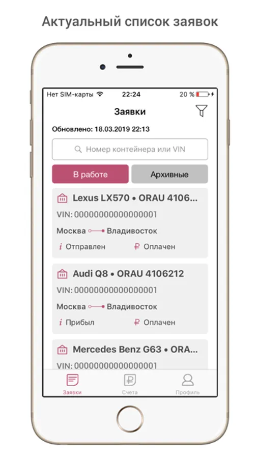 Для получения информации о местоположении автомобиля, клиенту компании Intermodal Logistics, достаточно ввести последние 7 символов VIN номера или номера рамы.