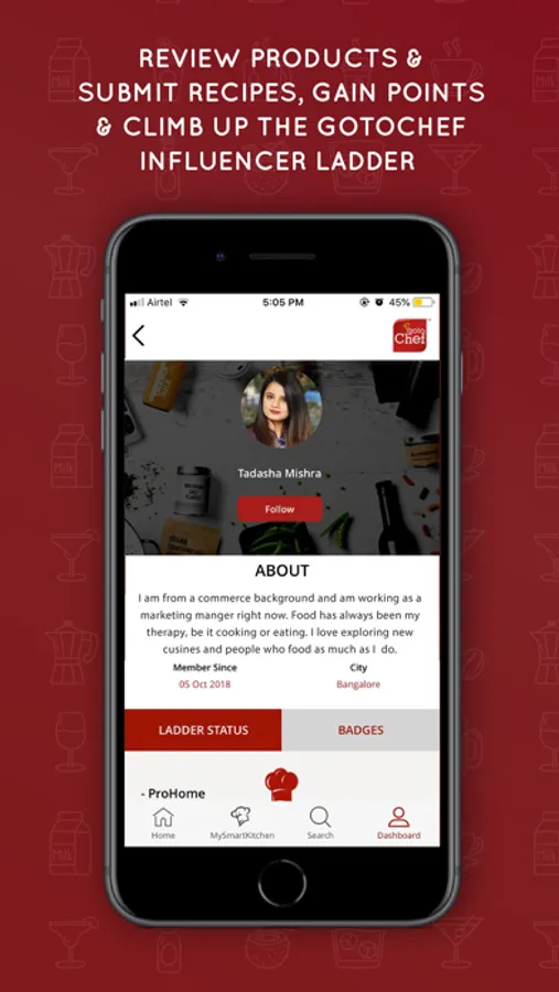 - While you rate and review food products and submit recipes, your every action helps you gain points and climb up the GotoChef ladder. Simultaneously you gain followers and you can also follow other community members you like.