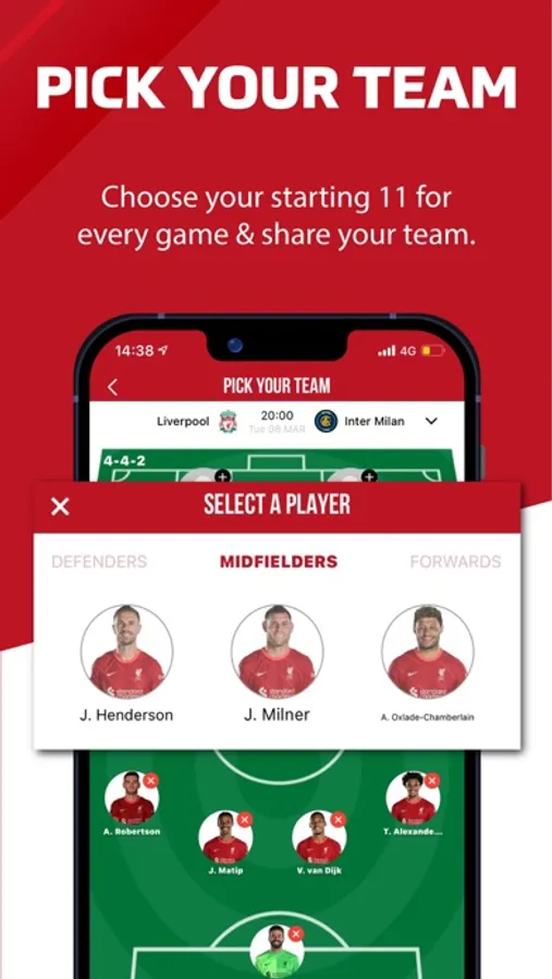Choose your starting 11 for each Liverpool fixture on our line-up builder and share with your friends socially.