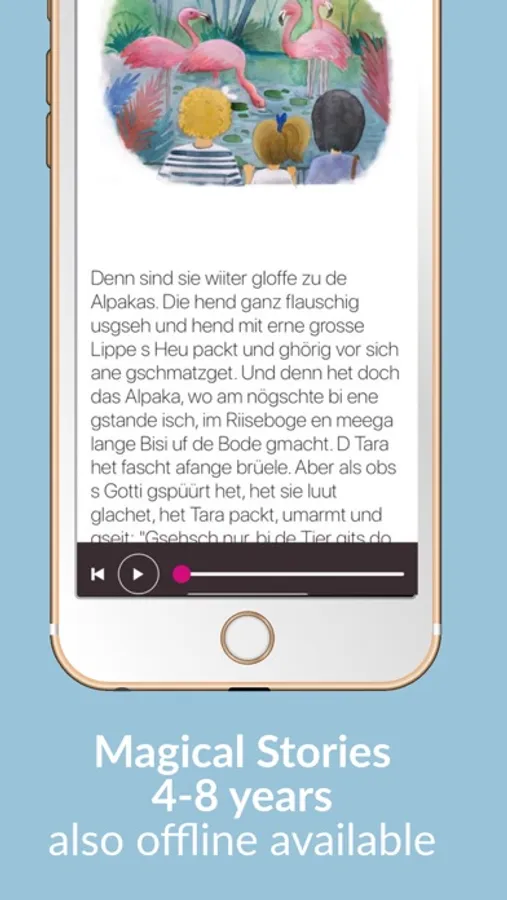 Multilingual stories in German, English, Spanish and Swiss German. Read to your child or use the audios together.