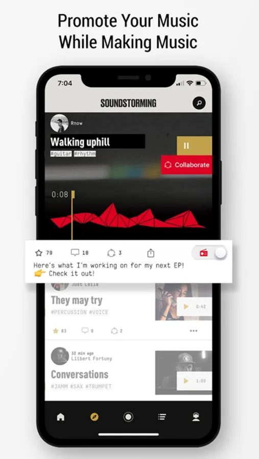 Create music together. Record and share your sounds and find musicians to help finish your track. Fast and easy way to discover ideas and make new music. Get your fans to participate in the music-making process. Download now to start your musical journey!