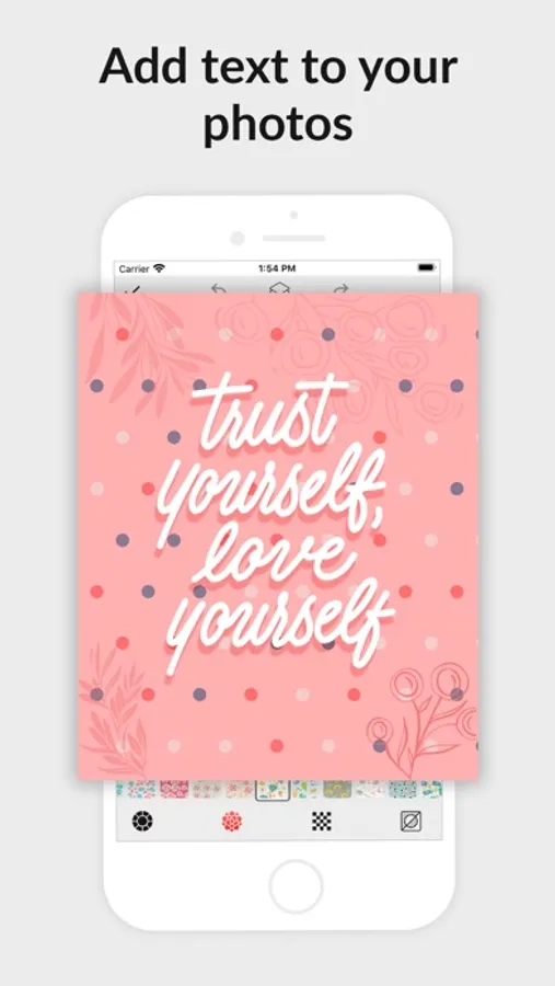 4. SAVE & SHARE – We keep all of your designs – just save them as draft and return to finish whenever you want. Save the finished work to your iPhone or share it on social media with a simple tap.