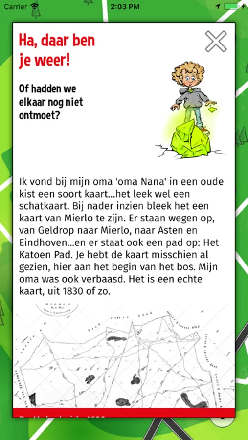 Ken jij het geheim van het verdwenen Katoenpad al? Dit pad verdween ooit van de kaart, maar is nu teruggekeerd op de locatie waar het volgens de verhalen lag, op de Molenheide tussen Mierlo en Geldrop. Over dit pad liepen thuiswevers van Mierlo naar Geldrop. Marianne Canters schreef er een spannend boek over ‘Het geheim van het verdwenen Katoenpad’. Met deze App maak je kennis met het Katoenpad en het boek. Zet hiervoor wel de locatievoorziening op jouw mobiele telefoon aan.
