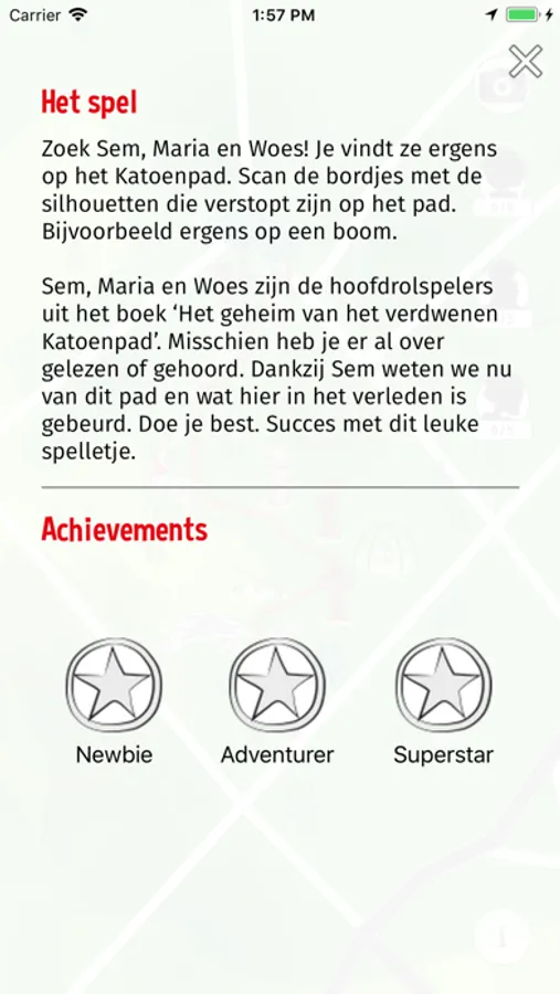 Je loopt met behulp van deze App het Katoenpad. Ook neemt de App je mee in een spel waarin je op zoek gaat naar de hoofdpersonen uit het boek. Zij vertellen je meer over de legende van het Katoenpad en wat ze meemaakten toen er in Geldrop en Mierlo nog volop werd geweven. Ontdek jij het geheim!
