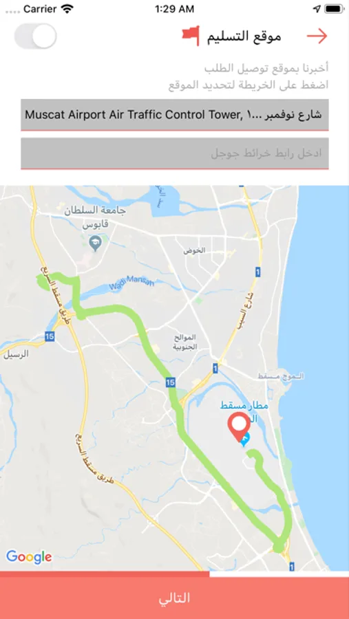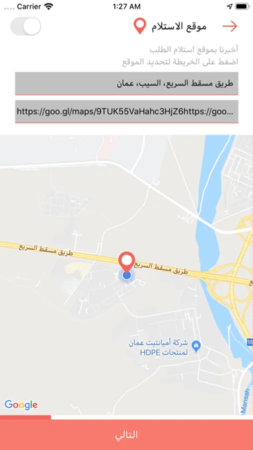 - Choice of location is determined either by searching, dropping a pin on the map or by using default location.