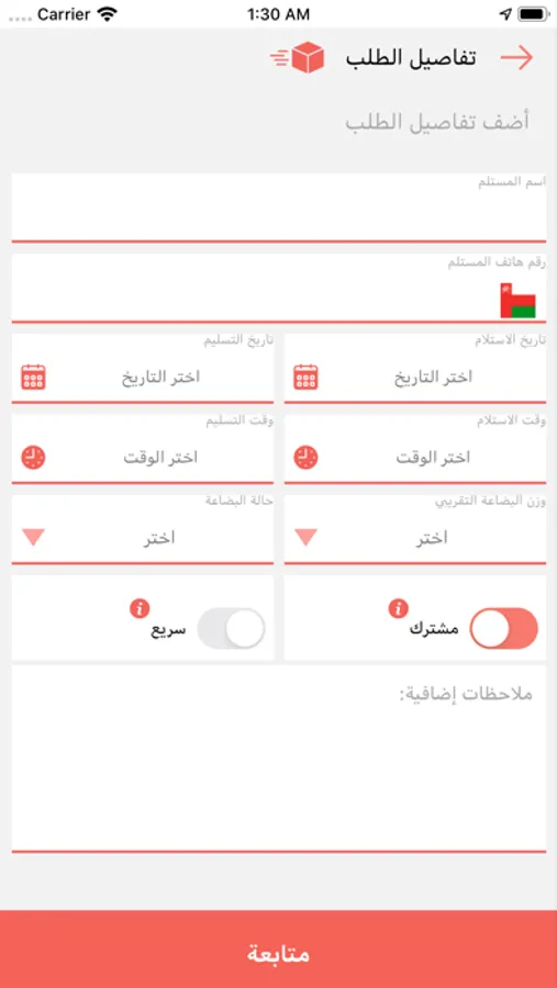 - Select the day and time of receipt of the package and the day and time of delivery of the package