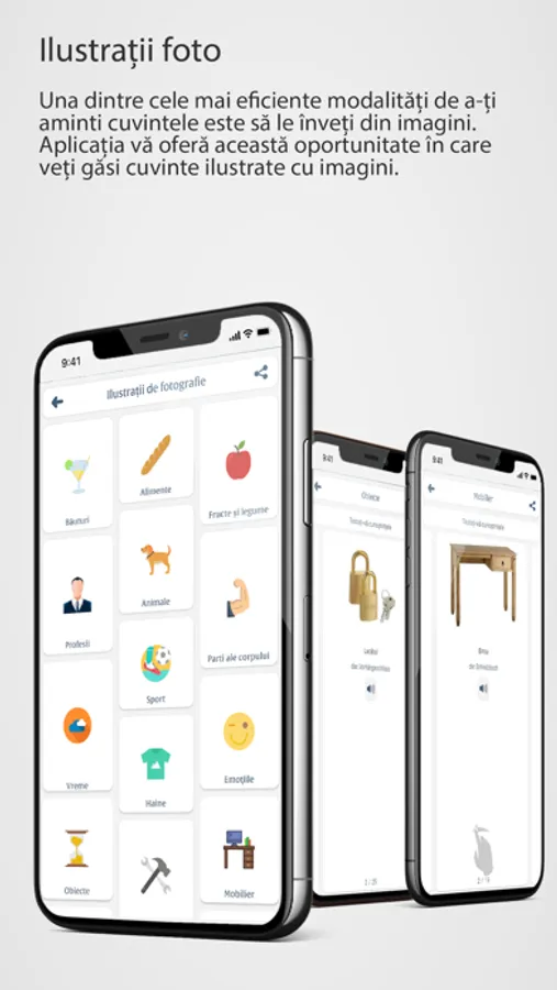 Învățare vizuală cu ilustrații foto: Amintește-ți mai ușor și mai rapid cuvintele prin învățarea bazată pe imagini. Ilustrațiile foto fac vocabularul memorabil și captivant.