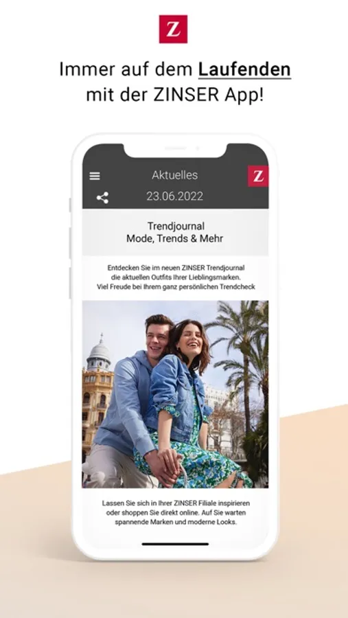 Seien Sie mit der ZINSERCard-App schon vor dem Shoppen über neueste Trends und aktuelle Angebote informiert und behalten Sie ganz einfach den Überblick über die Vorteile Ihrer ZinserCard. Mit der ZINSERCard-App haben Sie die vielen Extras praktisch immer bei sich. Die App hält Sie auf dem Laufenden, damit Sie keine günstige Gelegenheit mehr verpassen und informiert Sie darüber hinaus über alle aktuellen Angebote und Events.