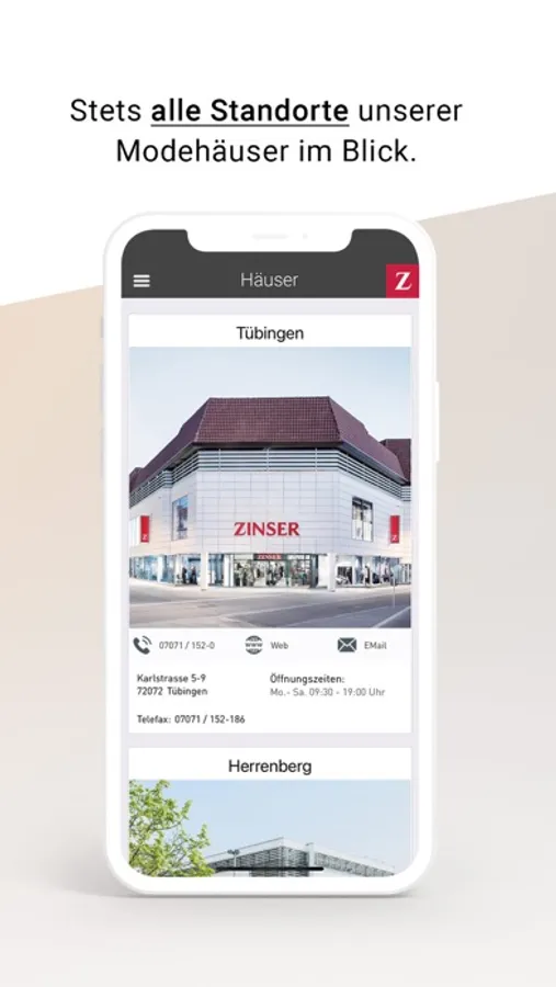 • Alle Informationen zu den ZINSER Modehäusern auf einen Blick