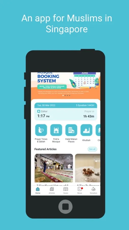 - Prayer time alerts and Qiblah compass (Singapore only)