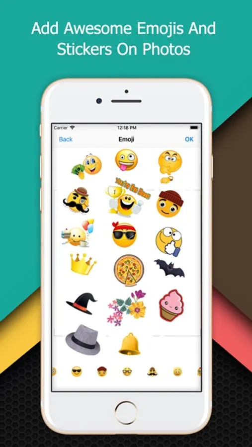 -Add stickers of different category’s like foods, hat, flowers ,,etc