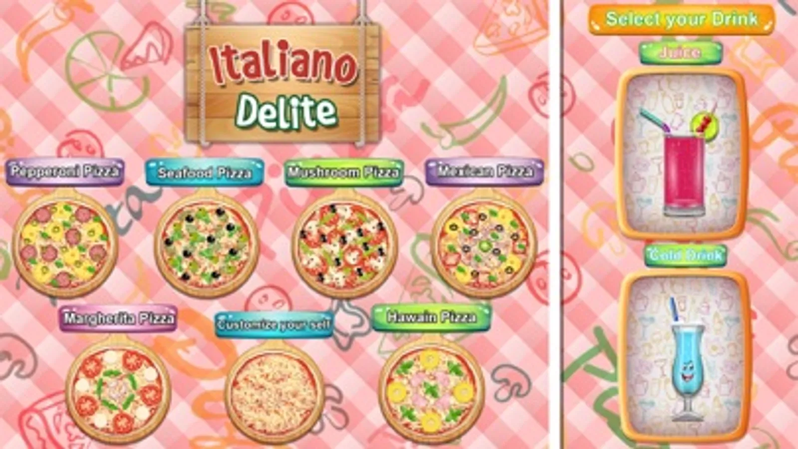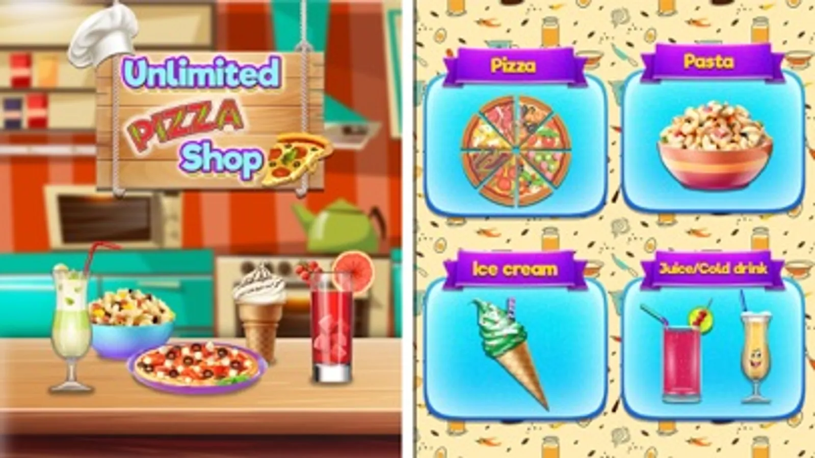 - Select favorite fast food snack to cook first from Unlimited Pizza Shop menu