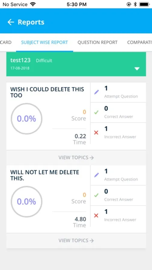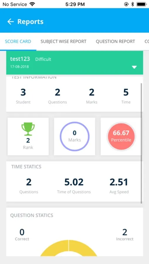 Our online exam provides a detailed analysis about the students score card covering each section individually.