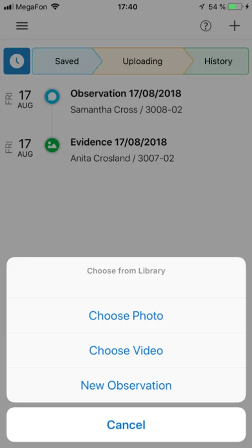 • Capture evidence anywhere at any time without the need for internet access, then upload to the e-portfolio when you are back online.