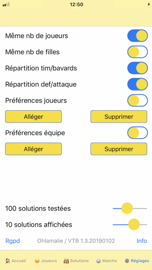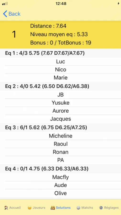 Une fois le niveau et les affinités de chaque joueur renseignés, VTB va générer des équipes équilibrées en respectant un maximum de voeux.