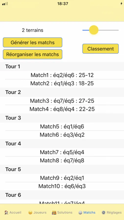 On peut également générer les matchs (mode championnat) et rentrer les scores pour voir le classement.