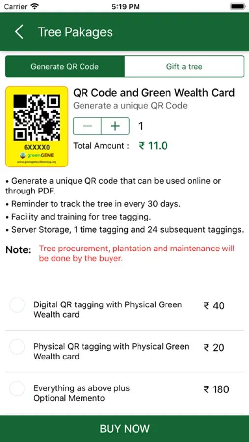 Just buy a greenGENE gift card and present it to your loved ones on their special occasions. They can scan the QR code on the gift card to know the details of tree gifted to them. They can also regular check the status of the tree and its maintenance schedule with by scanning the QR code.