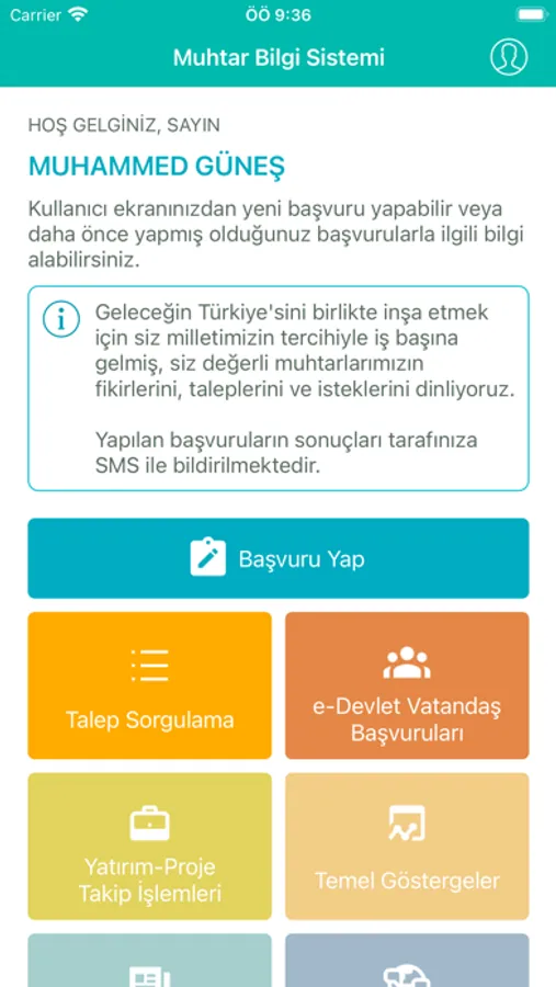 www.muhtar.gov.tr adresinden yapılabilen Muhtar Bilgi Sistemi başvurularını artık mobil cihazınızdan yapabilirsiniz. Ayrıca yapmış olduğunuz başvurularınızın hangi aşamada olduğunu takip edebilirsiniz.