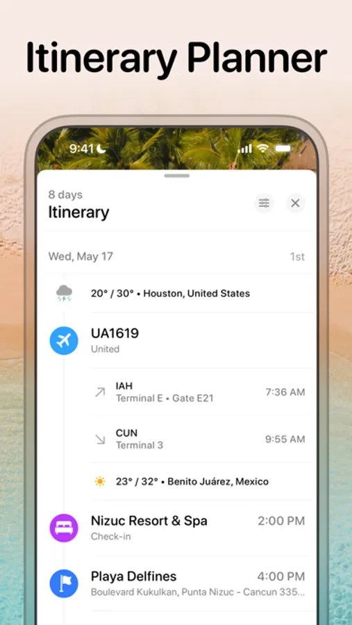 During the trip, the app helps you by providing a 10-day weather forecast, updated flight information, offline access to everything, time zone changes, and much more!