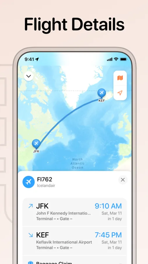– Receive flight updates via push notifications and never miss a gate or time change again.