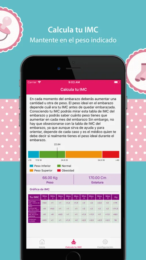 * Sistema de control de peso para el embarazo.
