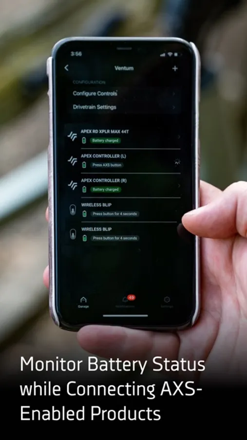 AXS app allows you to control and learn from your bike, bringing new levels of interaction with AXS enabled components. Wake the bike and let it tell you if it is ready to ride based on the battery and pressure levels. The more you know, the more you learn, the more you love.