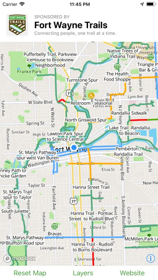 This app provides a native map experience and easy website access for users of the Fort Wayne Trails.